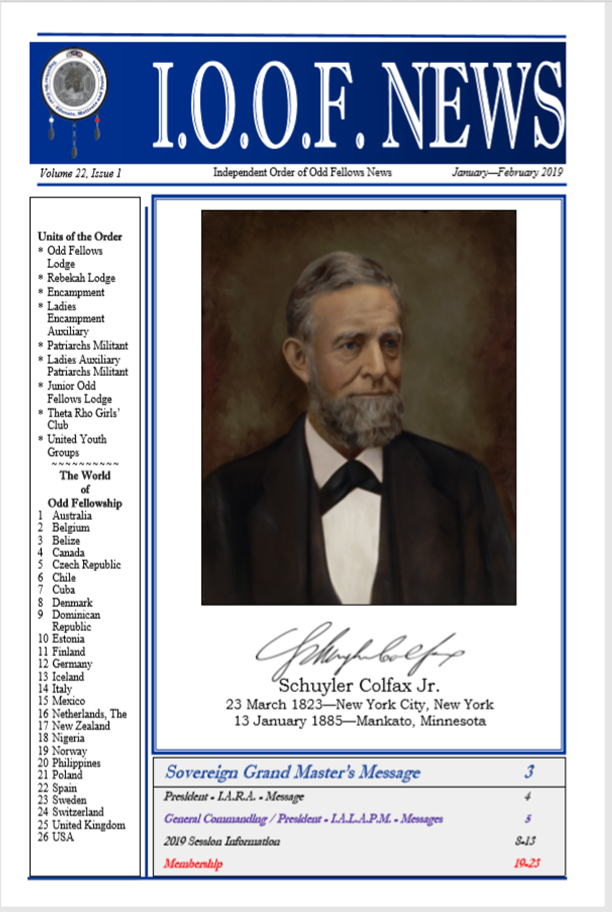 I.O.O.F. News enables you to be a well informed member. The six bi-monthly issues contain news on the International, Jurisdictional and Local Levels of Odd Fellowship in addition to providing you with program materials and inspirational articles. Click on above link